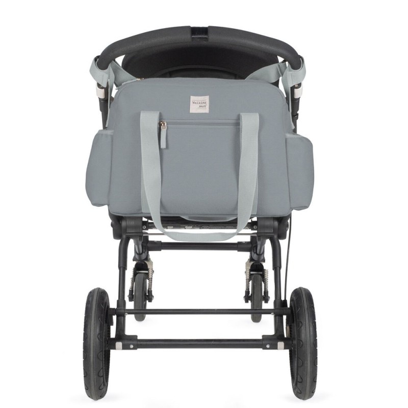 - La bolsa tiene un sistema universal de fijación, con 2 asas cortas ajustables que facilita la colocación en cualquier modelo de silla de paseo, así cómo una asa larga para poder colgarla en el hombro y asas cortas de mano.