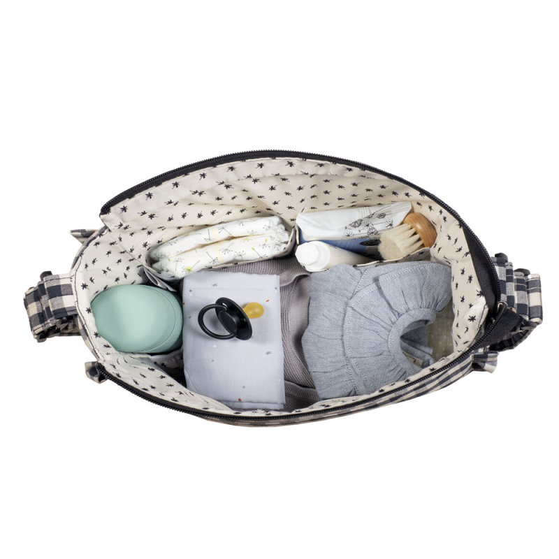 Bolsa canastilla Remy en cuadro vichy XL negro para silla de paseo. Incluye cambiador