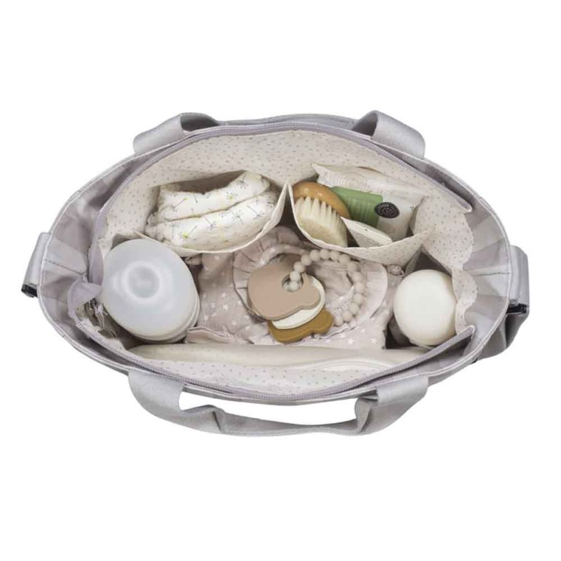 - Tiene múltiples bolsillos para poder tener todo ordenado. Dispone en el exterior de un práctico bolsillo frontal para tener a mano lo imprescindible. En el interior incorpora un bolsillo plastificado para la ropa húmeda, un bolsillo térmico para biberones y dos bolsillos para lo que necesites tener más a mano.