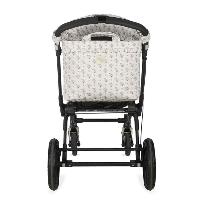 - La bolsa tiene un sistema universal de fijación, con 2 asas cortas que facilita la colocación en la silla de paseo. También incorpora una asa larga para poder colgarla en el hombro.