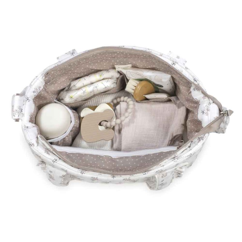 - Dispone de un bolsillo plastificado interior para la ropa húmeda, un bolsillo térmico interior y dos bolsillos laterales. Incluye cambiador.