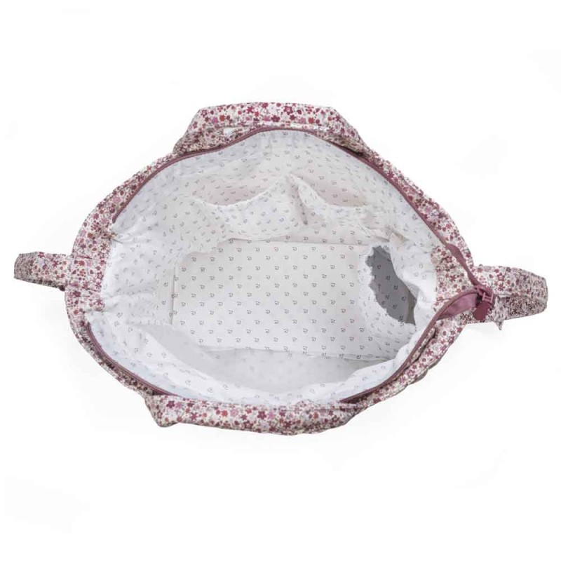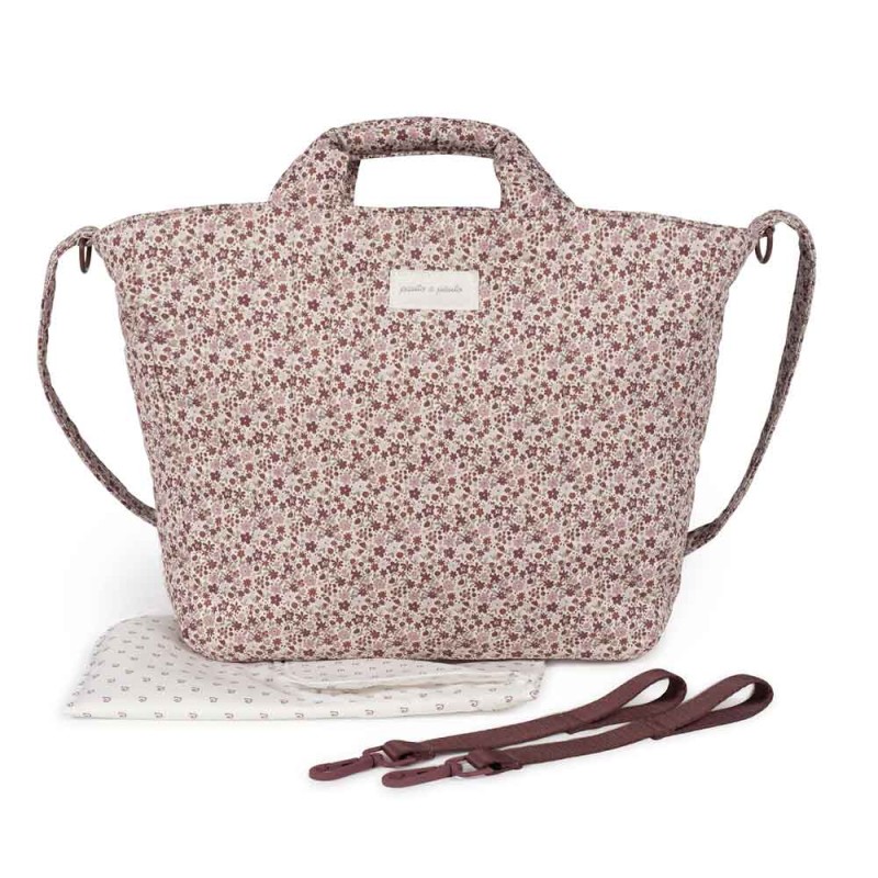 Bolsa Canastilla Cherry Flores de Pasito a Pasito: elegante y práctica. Ideal para llevar todo lo necesario para el bebé, combinando funcionalidad con delicado estampado floral.