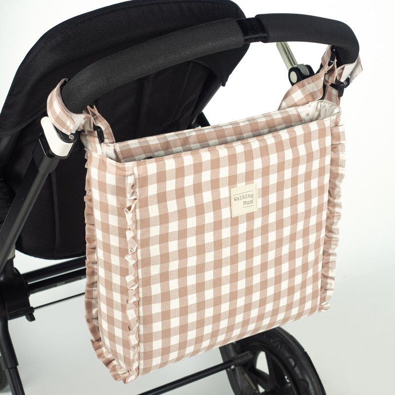 Bolsa canastilla Remy en cuadro vichy XL rosa para silla de paseo. Incluye cambiador