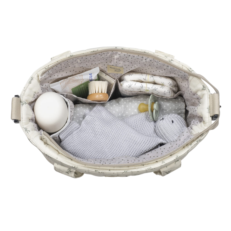 - Incorpora asas cortas con las que puedes fijarla a cualquier modelo de silla de paseo y asa larga para que te la puedas colgar en el hombro. Gran calidad y mucho estilo.