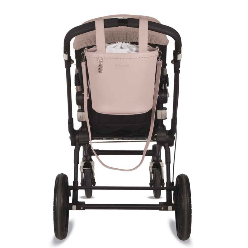 Bolso bucket para carrito de bebé Icon Green Pasito a Pasito, fabricada en polipiel de alta calidad en un elegante tono pastel.