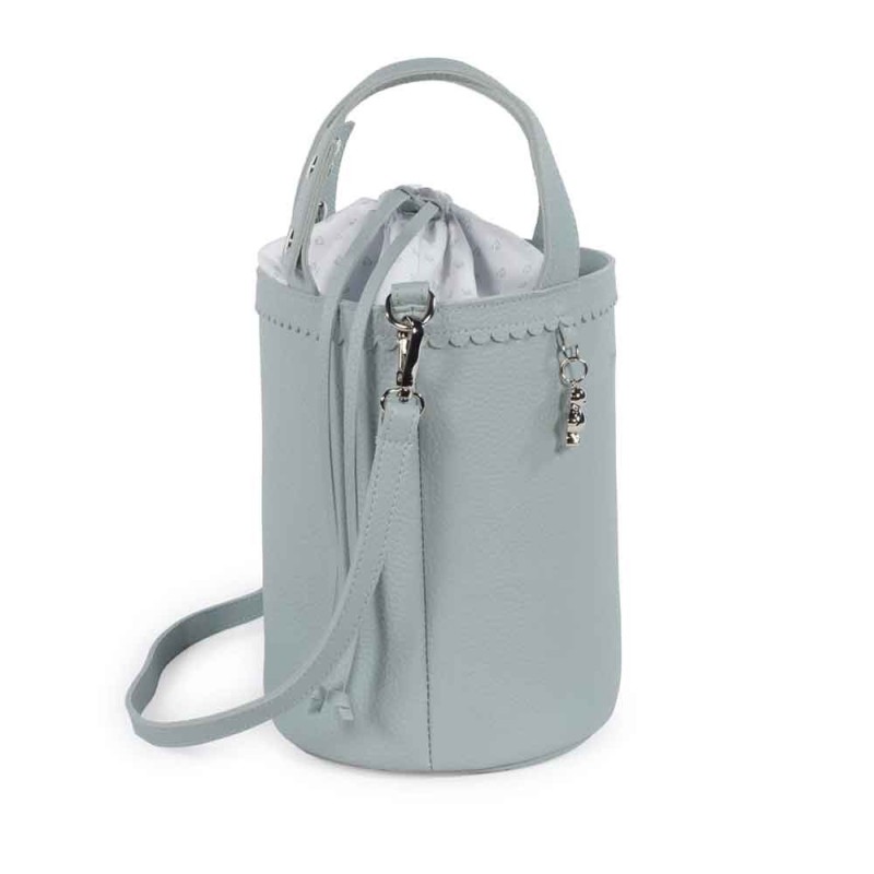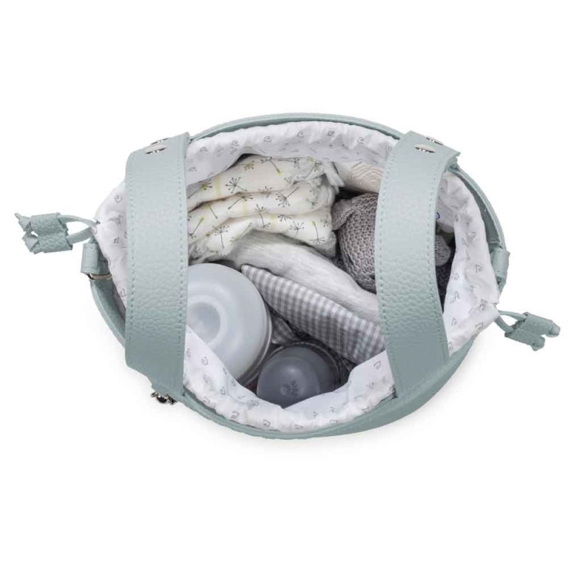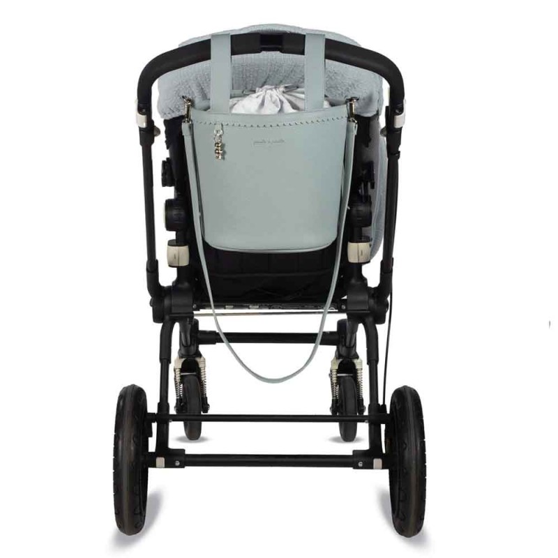 Bolso bucket para carrito de bebé Icon Green Pasito a Pasito, fabricada en polipiel de alta calidad en un elegante tono pastel.