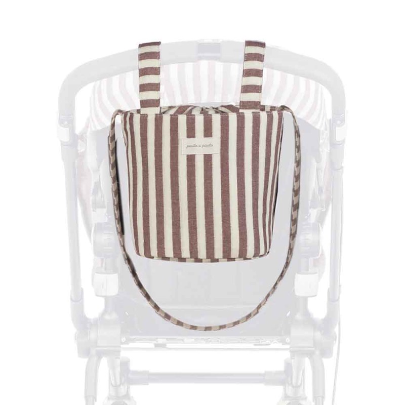 Bolsa Bucket Cherry Rayas de Pasito a Pasito: práctica y funcional, con diseño elegante de rayas. Ideal para organizar todo lo necesario del bebé y llevarlo cómodamente en el carrito o al hombro.