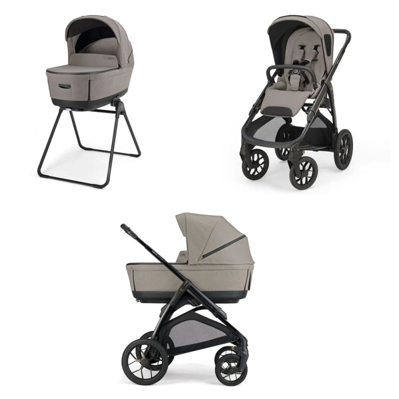Incluye chasis, capazo, silla de paseo, stand up, cubrepiés y portavasos.