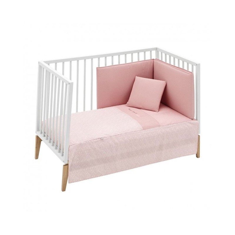 Juego de 2 piezas para vestir la cuna, compuesto por colcha invierno/verano más protector. Incluye un bonito cojín bordado.