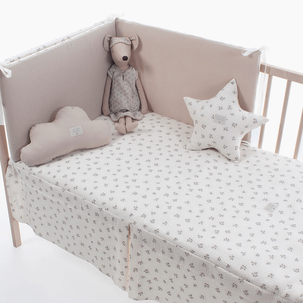 Colcha de cuna Uzturre Graciela piedra para cuna de 60 cm. Suave, ligera y elegante para el descanso del bebé.