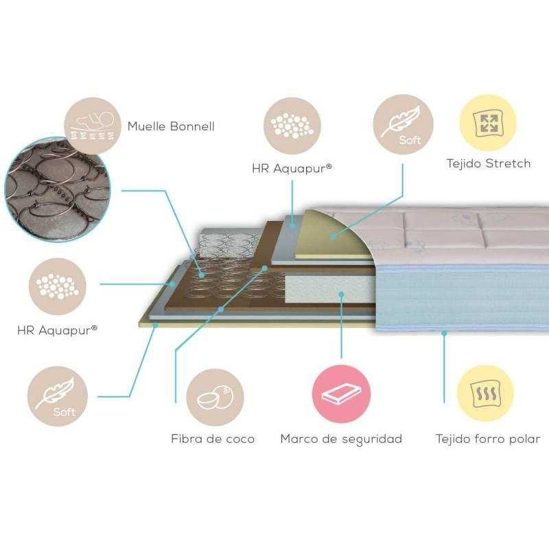 Cuenta con el muelle Bonnell, el cual deja pasar el aire haciendo a este modelo un colchón transpirable..