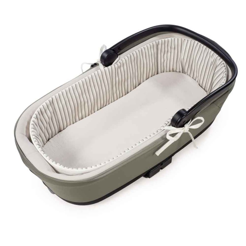 El cubre cuco con varillas y sábana bajera ajustable Botton con estampado a rayas es el complemento perfecto para aportar suavidad y elegancia al capazo de tu bebé.