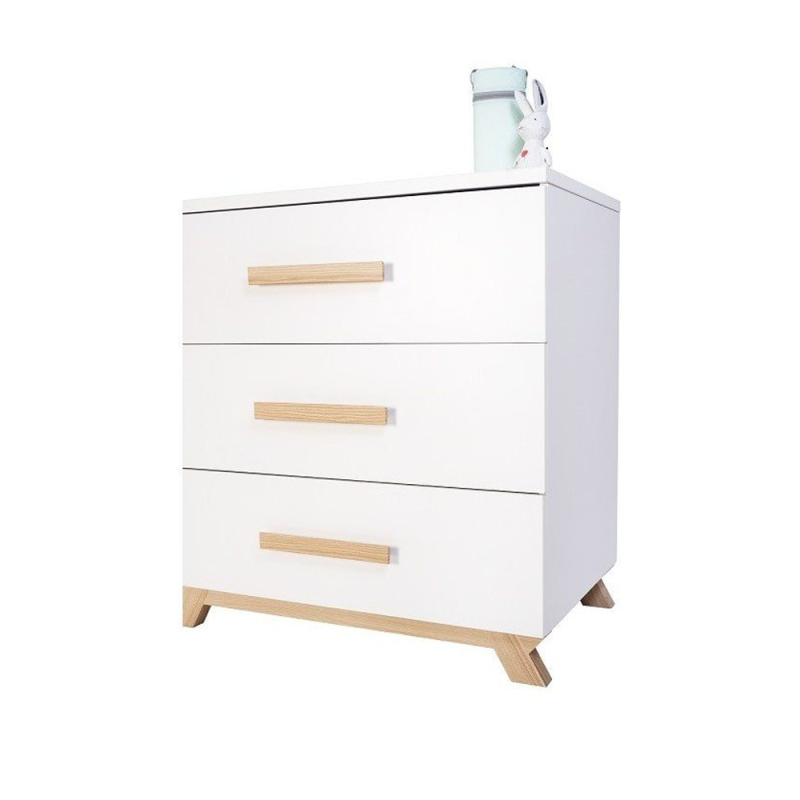 - Esta Cómoda Veneto de IKiD incluye un cambiador para colocar encima, así podrás cambiar de ropa o el pañal a tu peque sin moveros de su habitación. Guarda en los cajones o sobre la cómoda todas las cositas de higiene de tu peque para su cambio de pañal, para mayor comodidad.