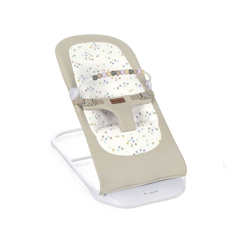 Hamaca Jané Baluu: hamaca ergonómica ultraligera con respaldo reclinable, plegado compacto y arco de juegos. Apta desde recién nacido hasta ~9 kg — perfecta para descanso, entretenimiento y comodidad en casa.