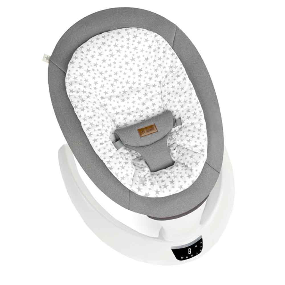 Hamaca electrónica Jané Moon: balanceo suave con 5 velocidades, temporizador y música relajante. Asiento acolchado, desenfundable y lavable, portátil y apta desde el nacimiento hasta 9 kg. Ideal para calmar al bebé y ofrecer confort mientras los padres realizan otras tareas.