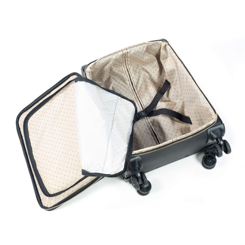 - Tiene el compartimento interior con gomas y un bolsillo con cremallera en la tapa para que esté todo bien ordenado.