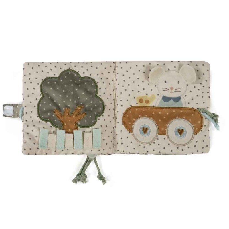 Este adorable libro de tela es perfecto para los pequeños que están aprendiendo a explorar el mundo que los rodea. Diseñado con detalles encantadores y funciones interactivas.