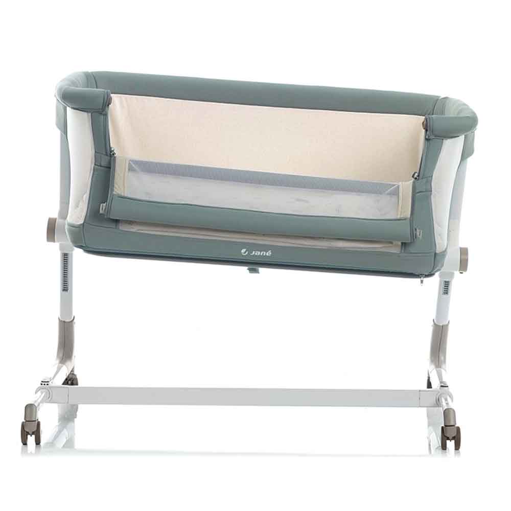 Minicuna Jané Baby Side: ideal para colecho desde recién nacido. Lateral abatible, altura regulable, colchón transpirable reclinable, ruedas con freno y textil completo incluido. Apta hasta ~9 kg, perfecta para tener al bebé siempre cerca y dormir con mayor tranquilidad.