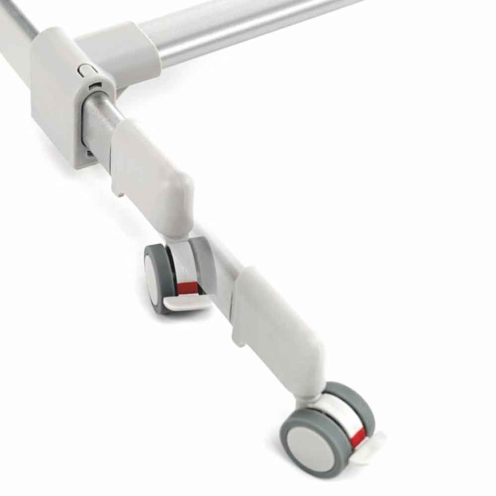 Ruedas giratorias para moverla fácilmente por la casa, con frenos para fijarla con seguridad.