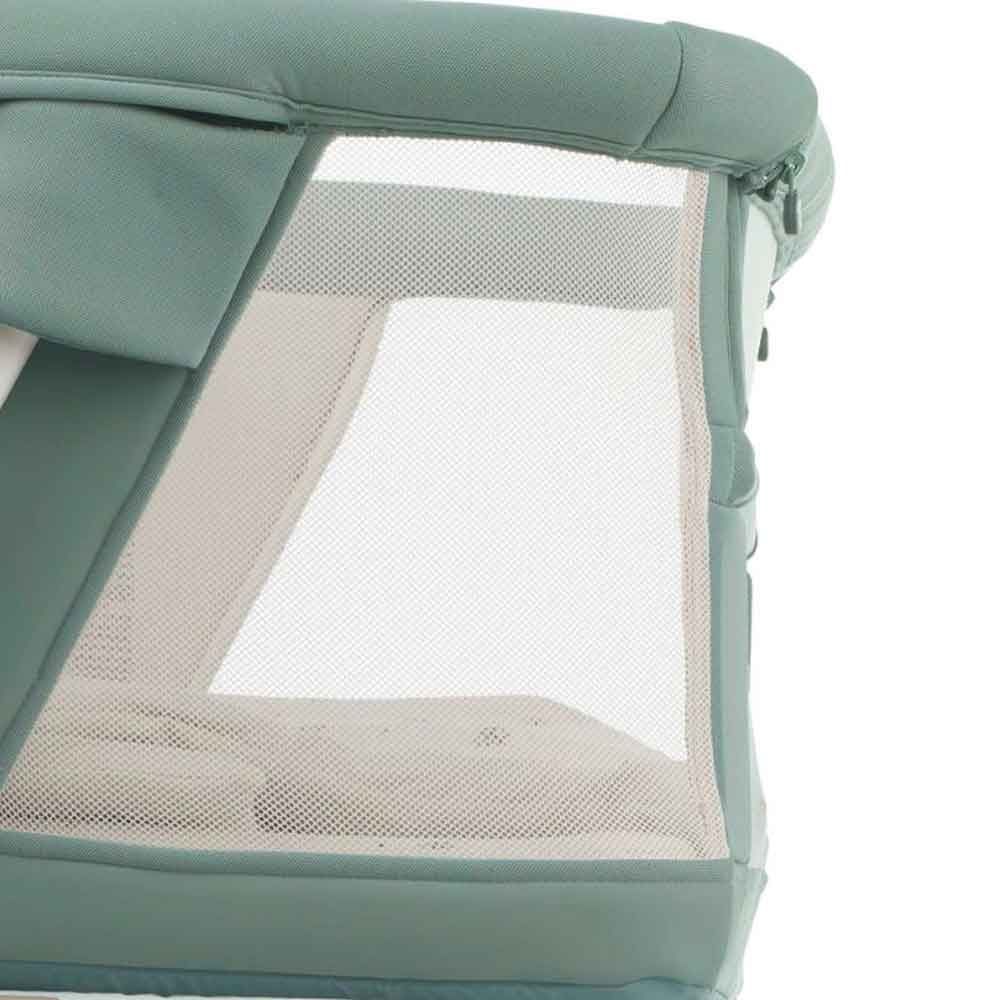 Rejillas laterales y frontal para permitir ventilación y visibilidad del bebé desde varios ángulos.