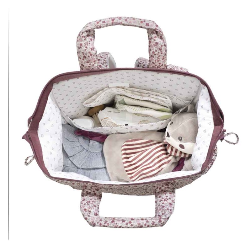 Mochila Cherry Flores de Pasito a Pasito: elegante y funcional, con delicado estampado floral. Ideal para organizar todo lo necesario del bebé y llevarlo cómodamente en paseos, viajes o el día a día.