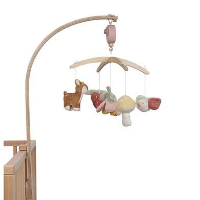 Ref: LD9000Móvil musical Little Dutch Fairy Garden: figuras de madera con temática de jardín y hadas que giran lentamente sobre la cuna mientras suena música relajante. Estimula la vista y el oído del bebé y crea un ambiente calmado para dormir.