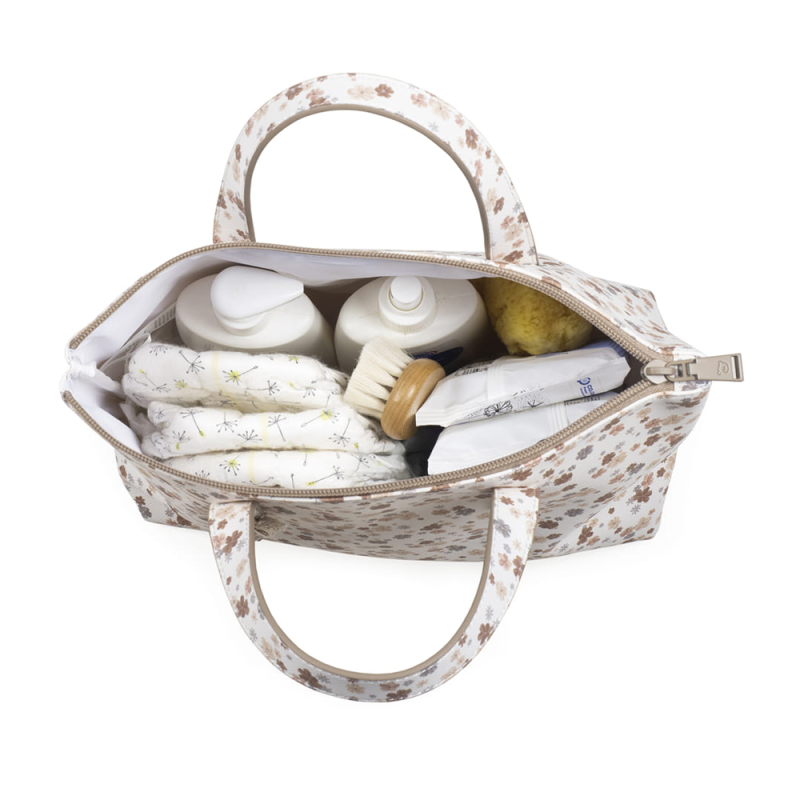 El neceser de bebé Somerset flor de Pasito a pasito es un bolso pequeño especialmente pensado para llevar todos los productos de aseo de nuestro bebé al salir de casa.