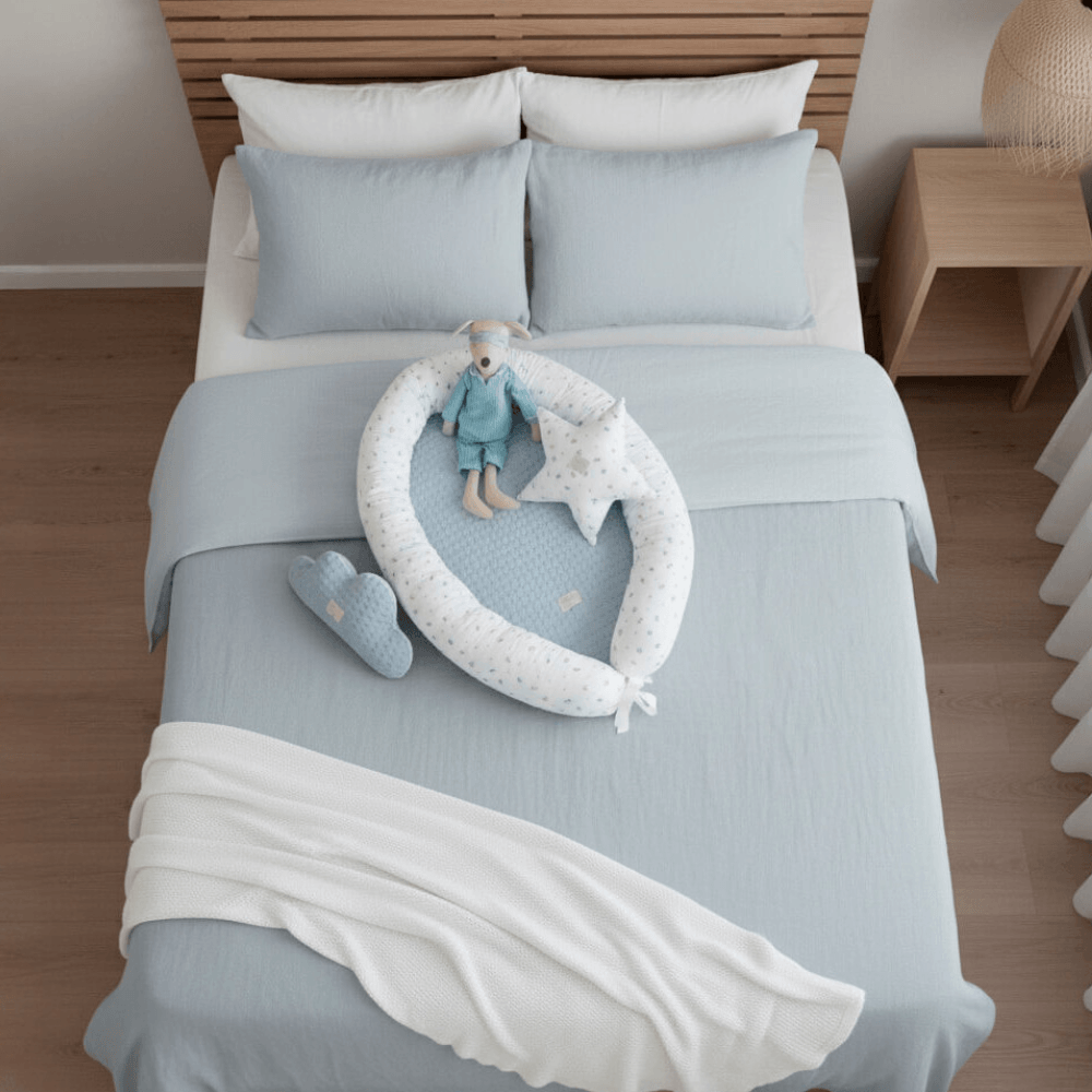Nido colecho Uzturre Paul azul, cómodo y seguro. Ideal para el descanso del bebé desde el nacimiento.
