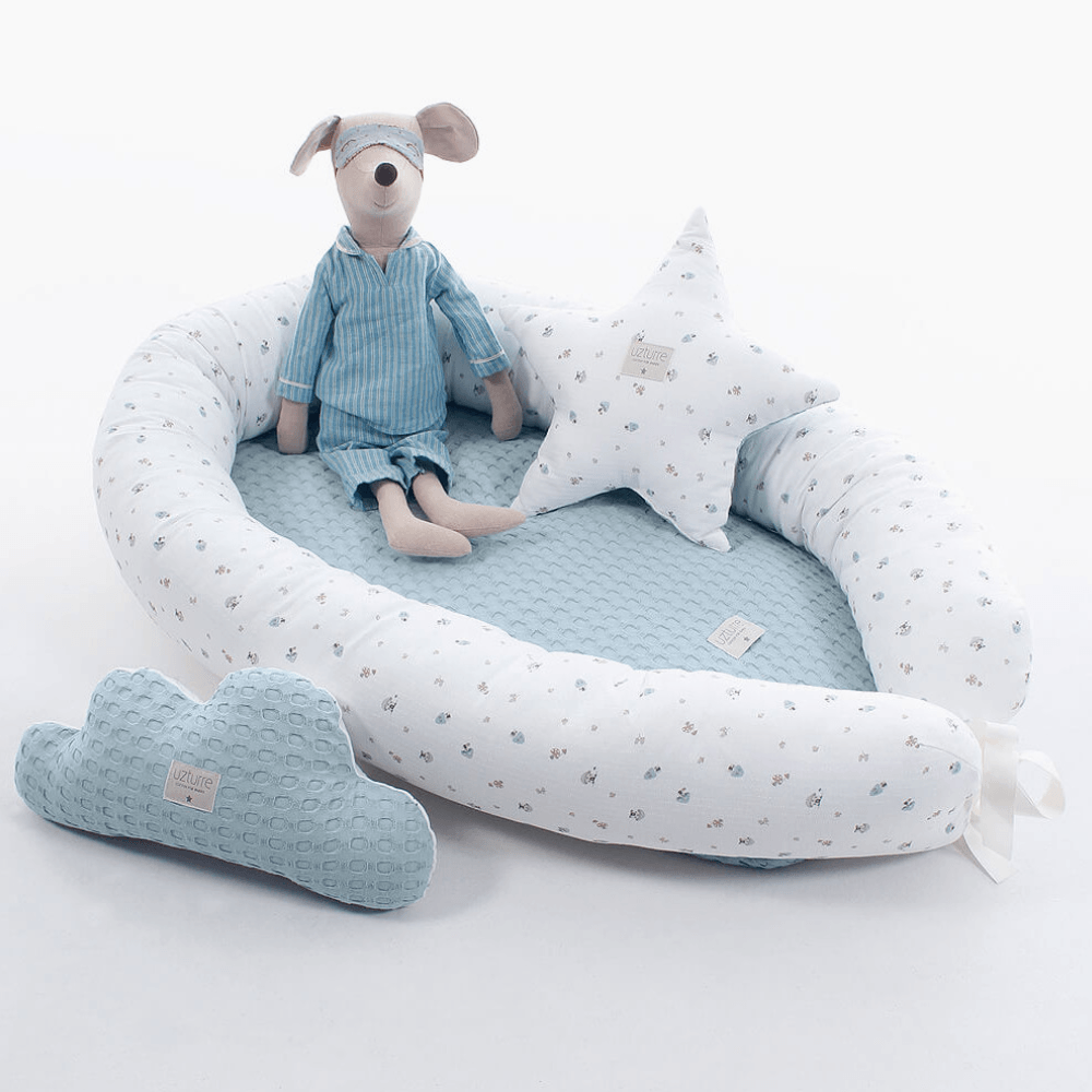 El Nido Colecho Uzturre Paul Menta Agua ofrece un entorno acogedor, seguro y confortable para el descanso del bebé. Su diseño envolvente proporciona protección y bienestar desde el nacimiento, con un tono fresco y relajante.