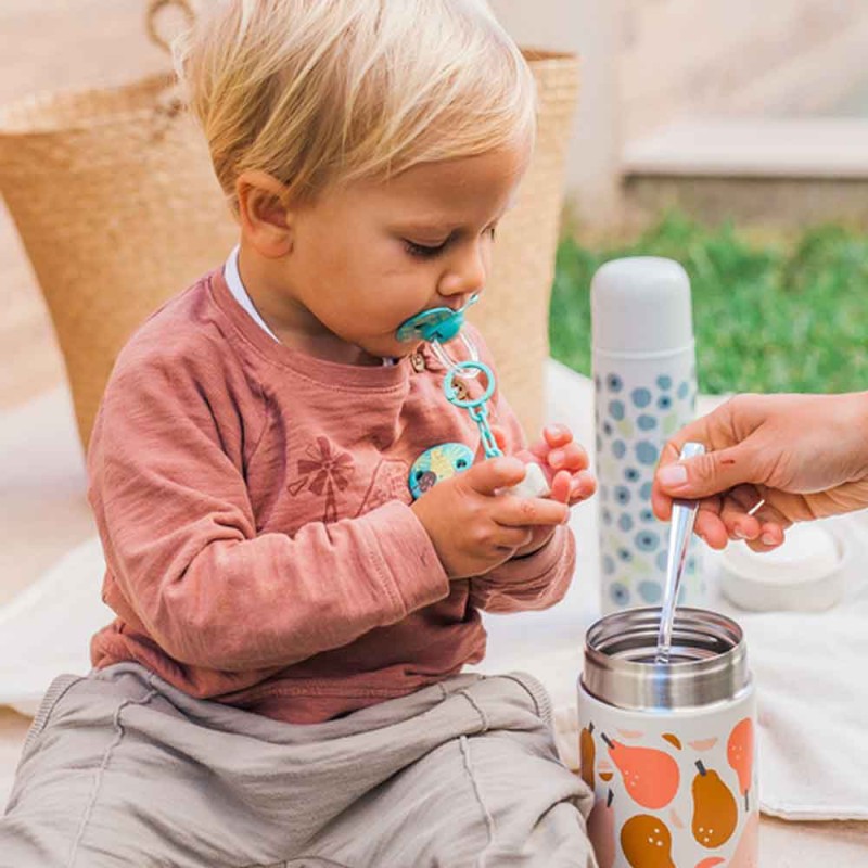 Este termo para papillas permite transportar los purés o alimentos del bebé manteniendo su temperatura durante varias horas. ¡Súper útil para salir a comer fuera de casa!