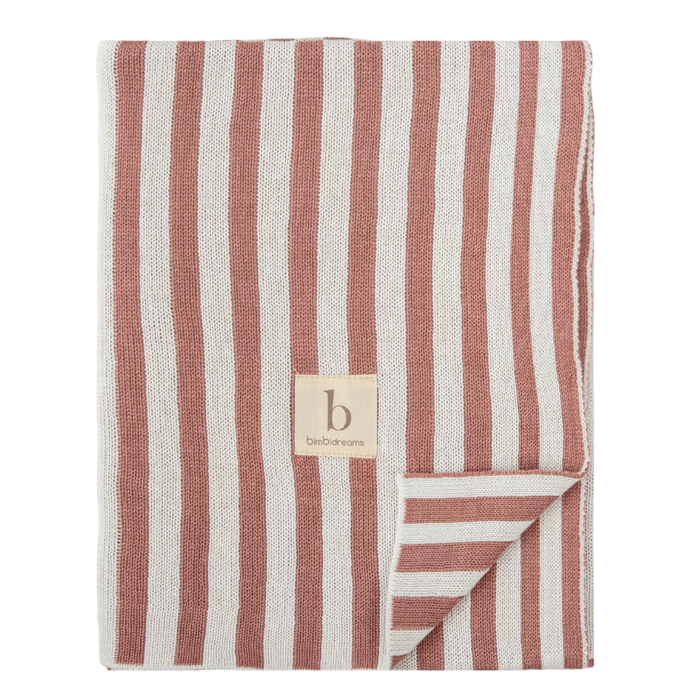 Ref: 254BAS04Toquilla de tricot Bimbi Bambú Stripes rosa 75x90 cm, suave y transpirable. Ideal para arropar al bebé con estilo.
