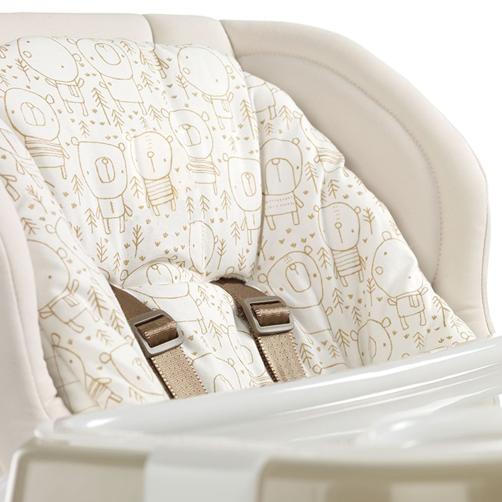 - SEGURIDAD Y ESTABILIDAD: arnés y estructura robusta aportan tranquilidad para los padres durante las comidas o descanso del bebé.