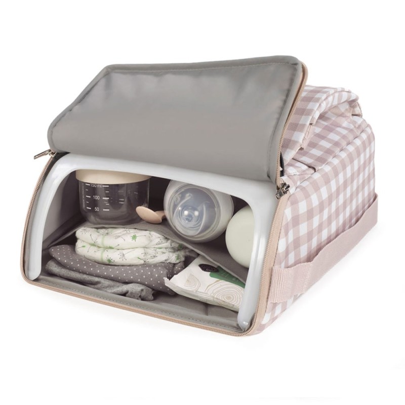 - Cuenta con una correa para llevarla cómodamente al hombro. Incluye un compartimento de almacenamiento en la base, perfecto para guardar pañales, toallitas u otros accesorios esenciales del bebé.