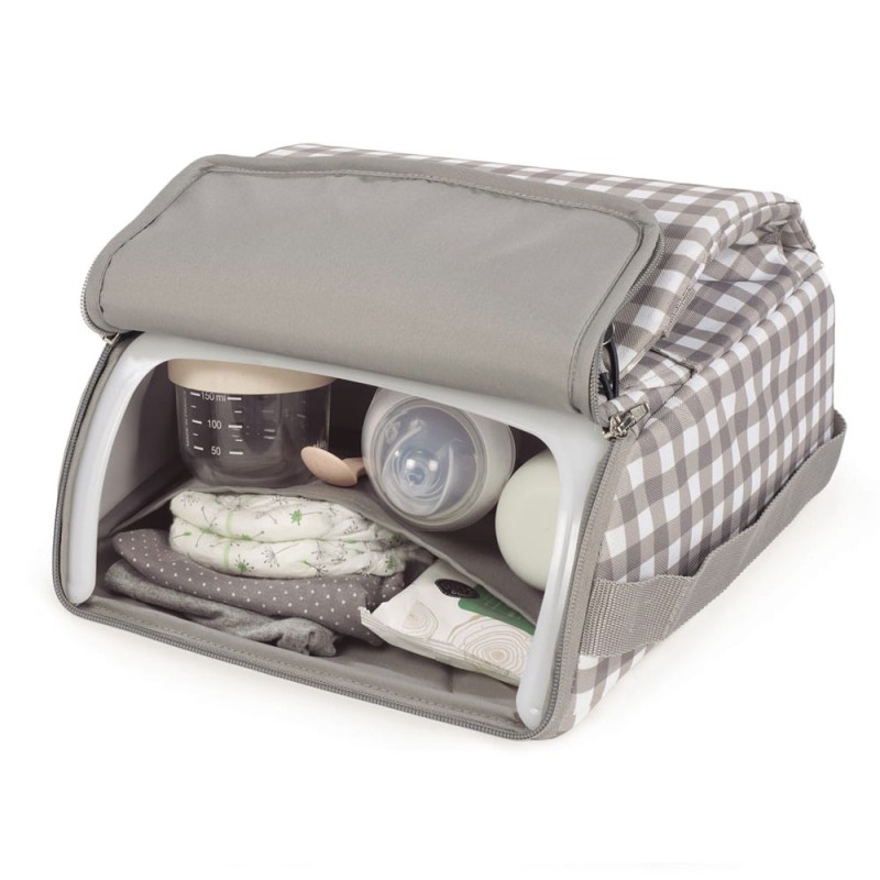 - Cuenta con una correa para llevarla cómodamente al hombro. Incluye un compartimento de almacenamiento en la base, perfecto para guardar pañales, toallitas u otros accesorios esenciales del bebé.
