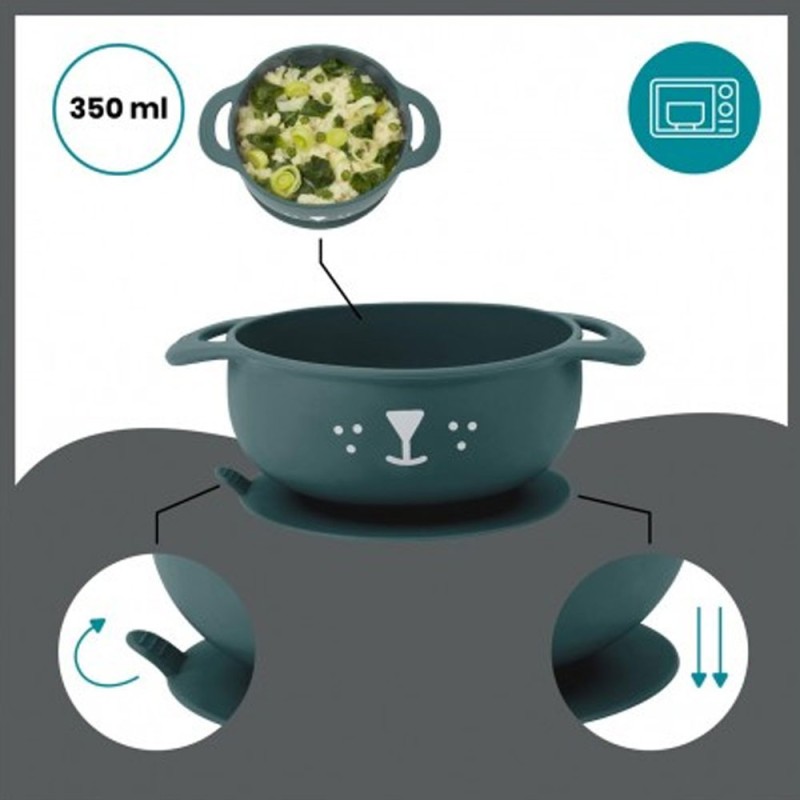 - Lo esencial para las comidas: 1 bol con ventosa + 1 cuchara.